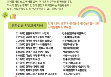 서울KYC평화길라잡이와 함께 걷다 평화길라잡이와 함께 역사의 현장을 걷습니다. 일제강점기, 해방과 분단, 전쟁 그리고 독재와 민주화까지 한국 근현대사 100년, 역사의 흔적이 고스란히 담겨있는 길! 그 길을 걸으며 과거를 돌아보고, 독립, 통일, 민주, 인권을 생각해봅니다. 우리가 걸어가는 이 길이, 더 넓어지고 연결되기 위해 함께 걸어주시겠어요? *평화길라잡이는 역사의현장을 평화, 인권의 관점으로 해설하는 자원활동가입니다. 현재, 서대문형무소와 민주인권기념관(구.남영동대공분실)에서 활동하고 있습니다. […]