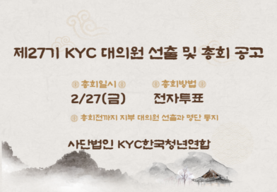 제27기 KYC한국청년연합 대의원 선출 및 총회 공고 [제27기 KYC 대의원 선출 및 총회 공고] 2026년 새해를 맞아 KYC 정관 16조에